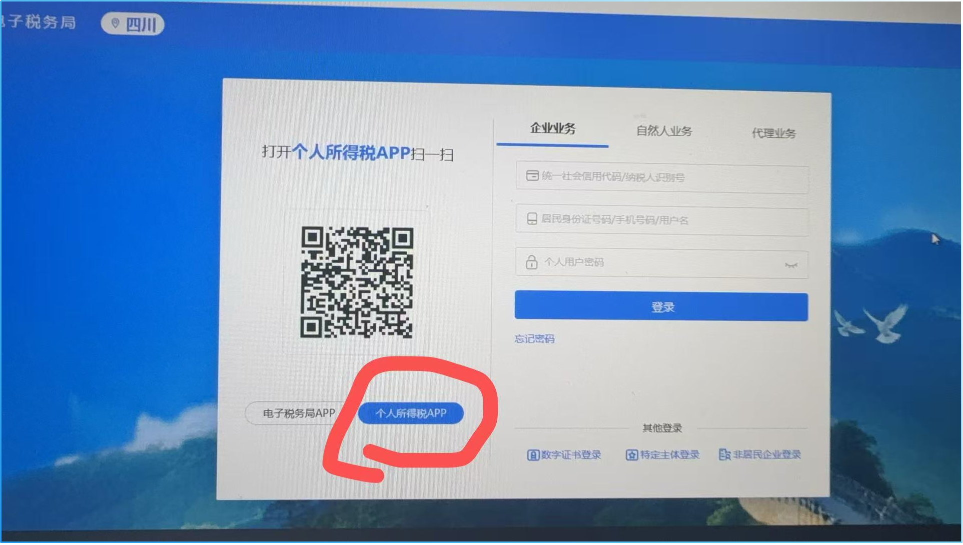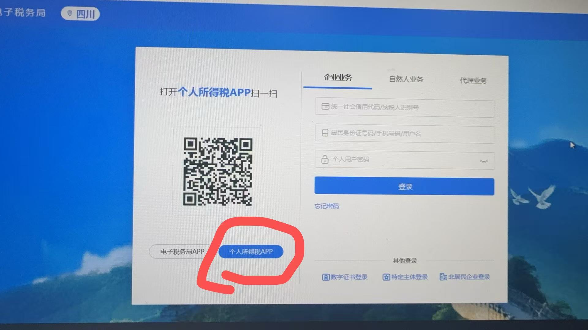 2、通过个人所得税APP扫码登录电子税务局