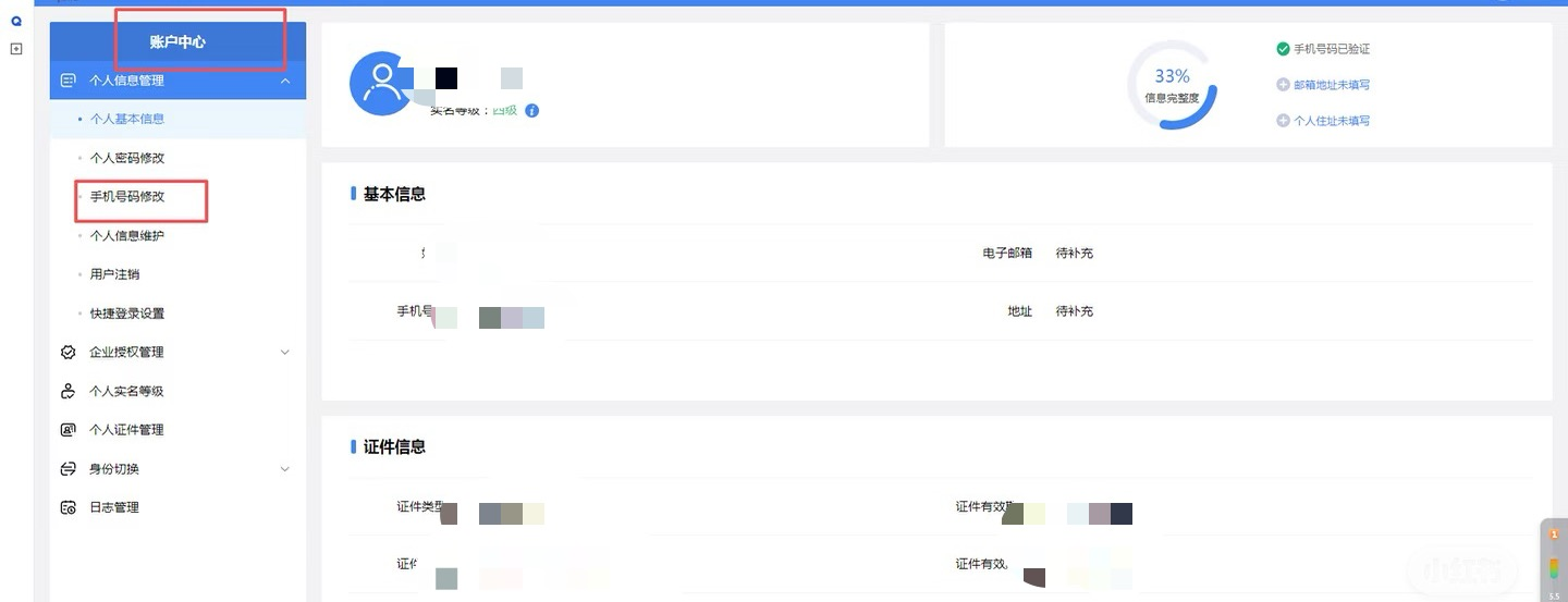 2-1:登录电子税务局后及时修改电子税务局手机号码并完成实名认证