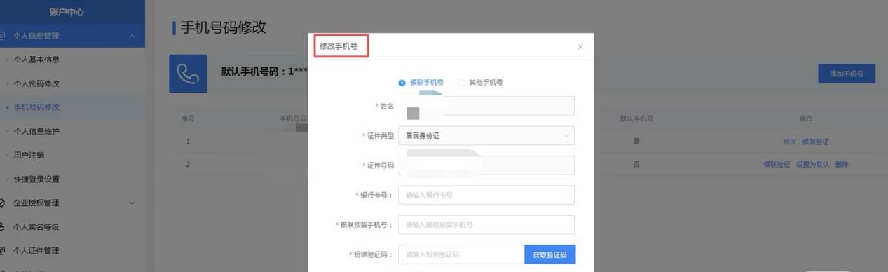 进入电子税务局网页端:自然人身份登录电子稅务局后-右上角【账户中心】-左侧界面点击【个人信息管理】-点击【手机号码修改】-如手机号类型为【其他手机号】则该手机号并未经过银联实名验证。可点击【银联验证】-输入对应银行卡号和银联预留手机号并通过验证码完成实名验证,验证通过后手机号码类型会变为【银联手机号】,同时将验证通过的号码设置为默认,登录即可使用该号码。