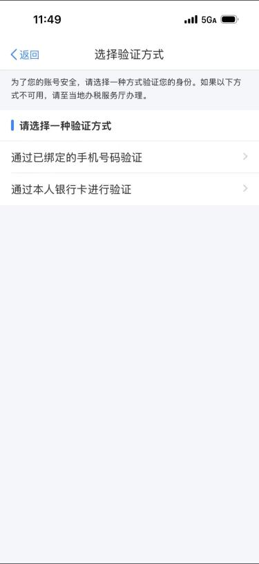 1-3:选择验证方式,如原手机号可以接收验证码建议选择通过已绑定的手机号码验证,如该手机号后续不用于登录电子税务局,建议找回密码后需要修改手机号与电子税务局登录手机号一致。修改方式后续会体现。