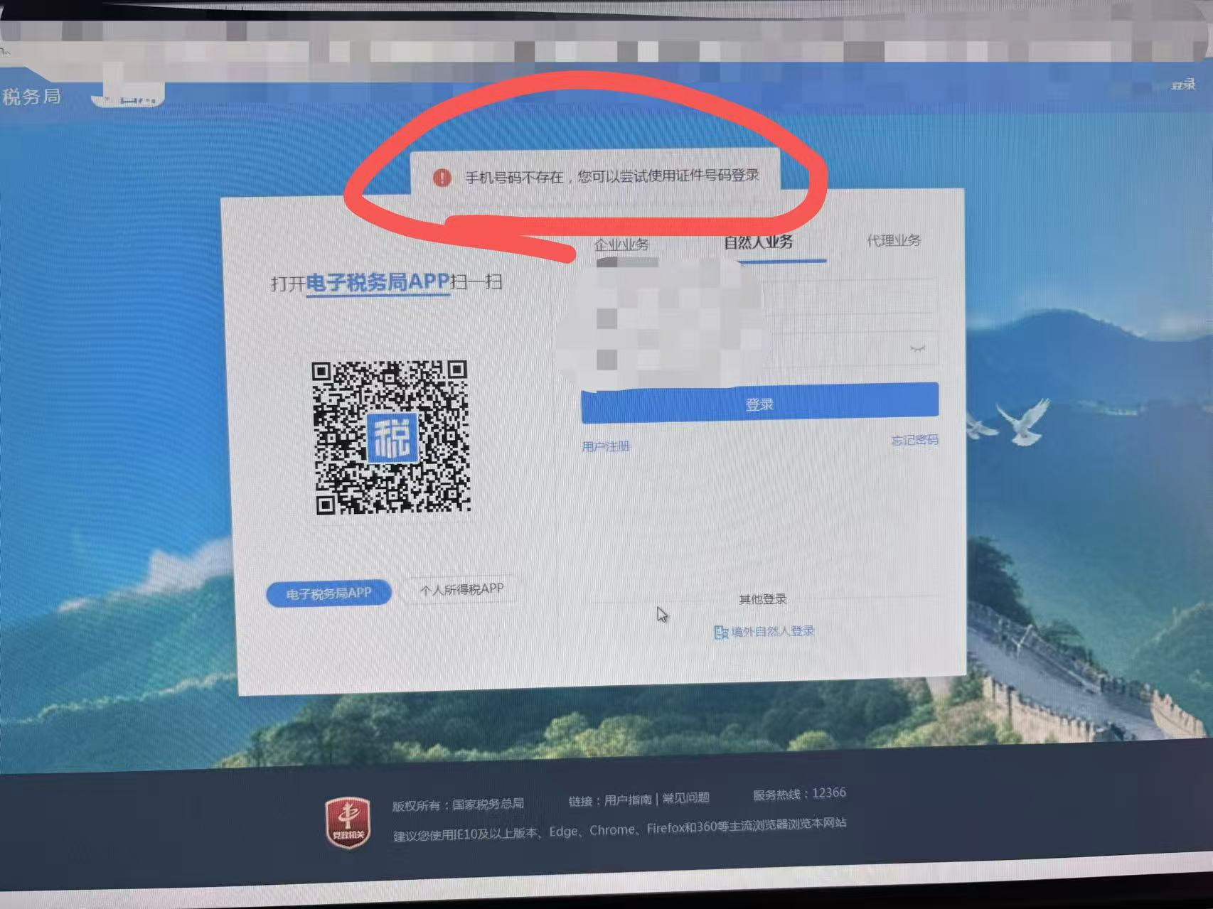 部分纳税人登录电子税务局提示【未设置手机号/手机号码不存在】,且个人所得税扫码登录也无反应的可能是多人一号。