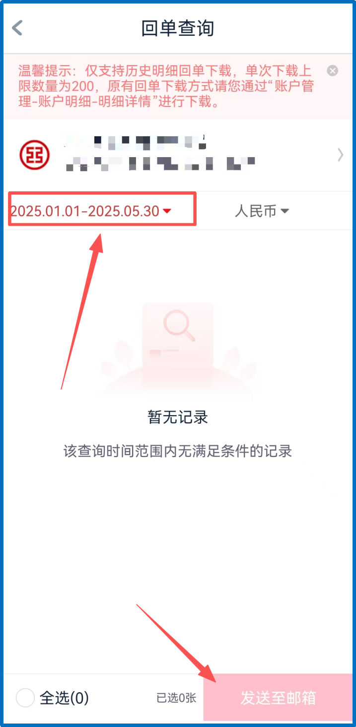 进入回单界面后,点击【更多查询】,选择对应的区间,填写邮箱就可以把回单导出来,我们这边就可以收到了。