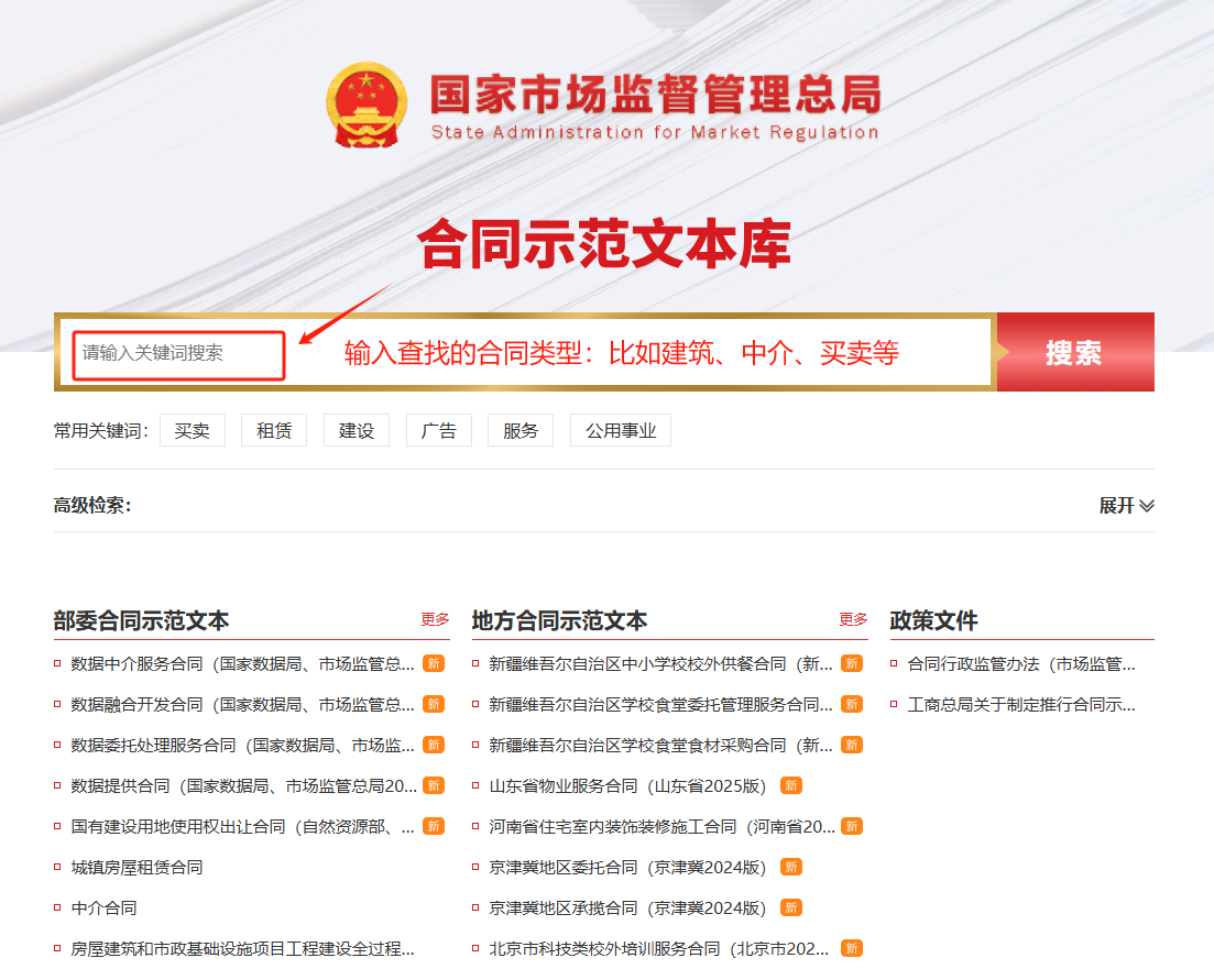 三、输入——查找的合同类型:比如建筑、中介、买卖等。