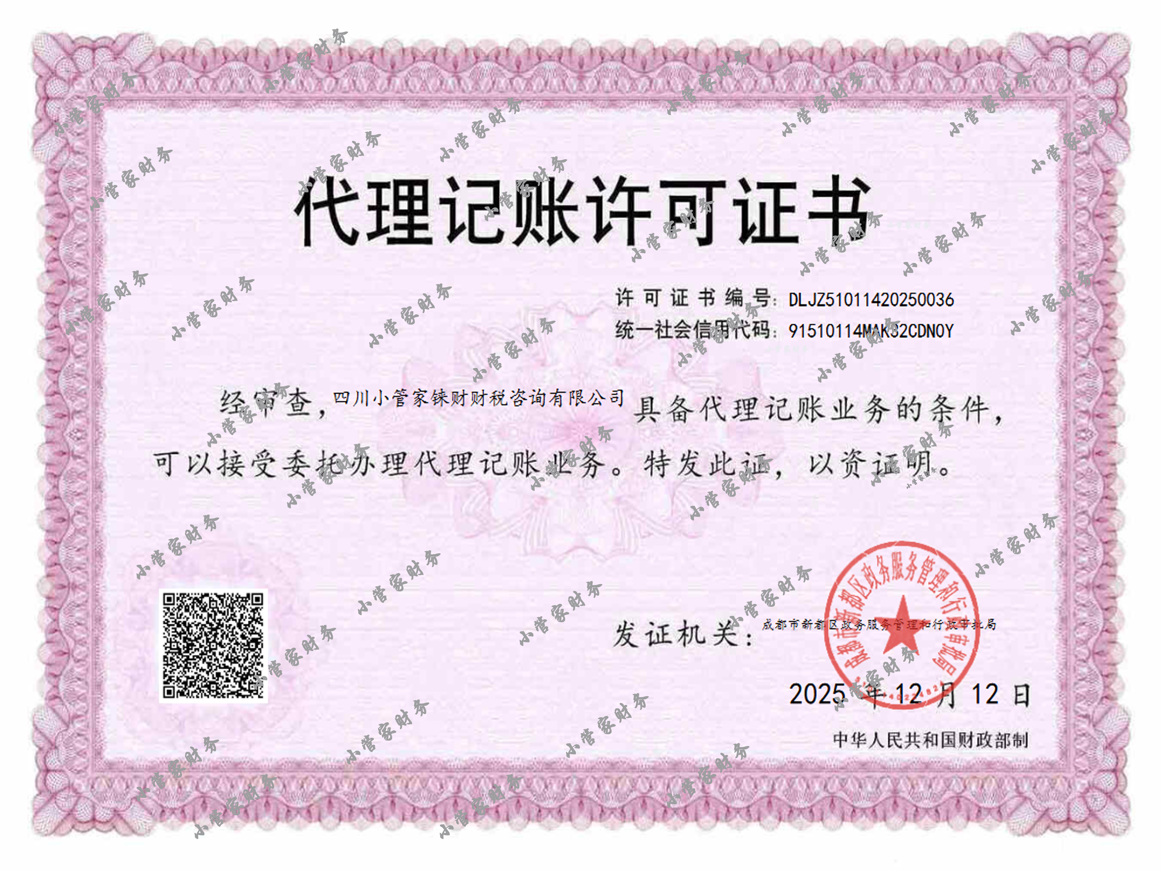 小管家企业代账许可证 -